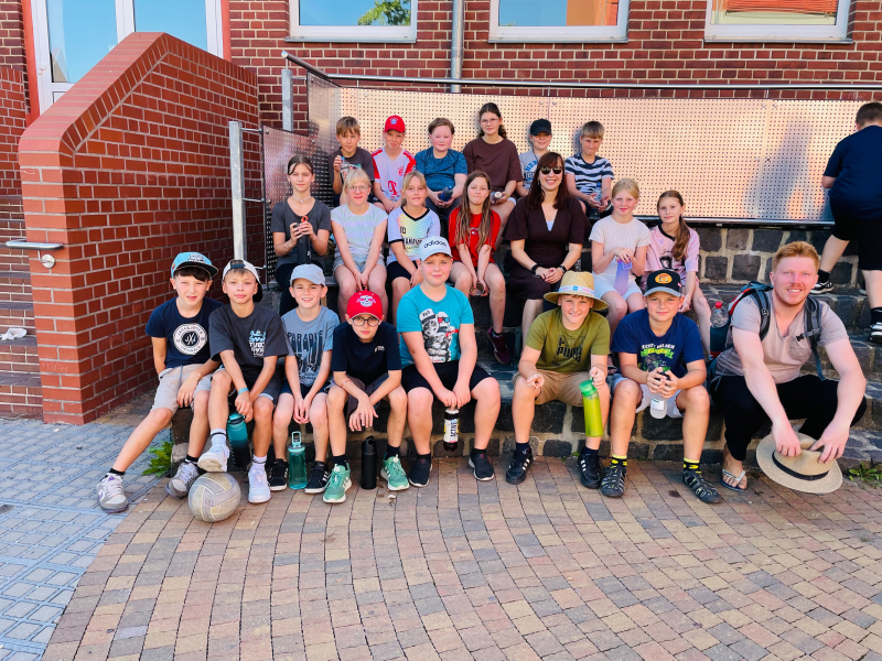 Zum Ankommen gab es zunächst ein kleines Begrüßungsprogramm in der Turnhalle, bei dem die Klasse 5a ein kurzes Musical aufführte. Anschließend folgte eine bewegungsreiche Sportstunde mit verschiedenen Willkommensspielen, die für viel Freude und eine gelöste Atmosphäre sorgten. Danach stärkten sich die Kinder bei einem gemeinsamen Frühstück, das von der Schule gestellt wurde.![]()